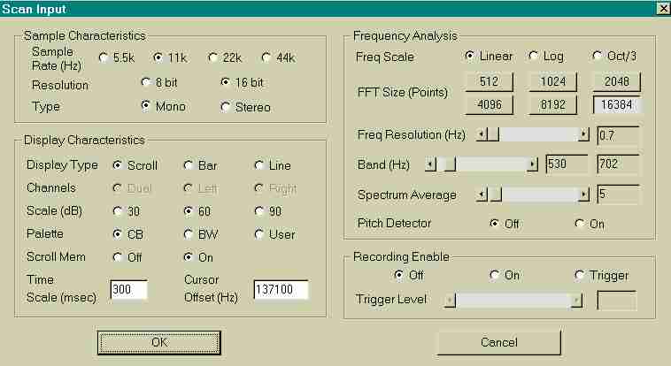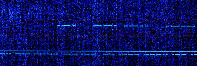 Wenn ich die normale Morsegeschwindigkeit von 60 bis 100 Buchstaben so reduziere, daß ein einzelner Morsepunkt die Länge von 3 oder 4 Sekunden hat, kann ich mit Hilfe der FFT Analyse Signale erkennen und dekodieren, die sehr weit (für den Fachmann: ca. 20 dB) unterhalb des Rauschpegels liegen.