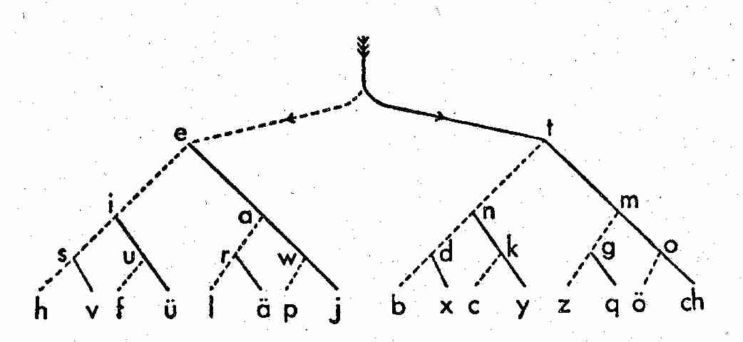 dekodieren. Fängt ein Buchstabe mit einem Strich an, folgen wir dem