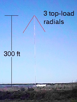 a 300' verticle steel tower for the antenna. The entire tower radiates,