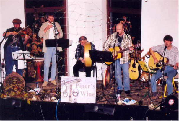 | Piper's Wine is a folk-music groupfrom the Peine area (Peine is a small town in Lower Saxony, about 30km East of Hannover). Besides Flutists-Joerg, none of us has any professional relationship to music at all. We play, what we like: Irish Folk (e.g. Dubliners), traditionals (specifically influenced by Rodney Cordner/Jean Pierre Rudolphe, Tommy Sands, Christie Moore), one or the other American folksong (Cityof New Orleans), Easter German folk (Puhdys, Gundermann, Keimzeit), multicultural folk from various areas in the world, such as Egypt, Russia ("Kalinka"),Wader/Bellmann and Reinhard Mey songs and, if absolutely necessary, wecan also play Hans Albers, sometimes we vary some classical tunes adn songs. | |||||||